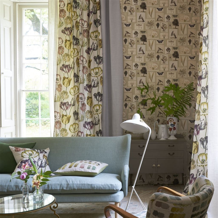Regular price £88.00Vintage decoupage tulips in sultry tones of colour bloom amidst a soft buttermilk ground. Digitally printed on a pure cotton cloth for evocative floral curtains, blinds, cushions, bedcovers and upholstery. In one dynamic colourway. (Fabric - Width: 140cm, Horizontal Pattern Repeat: 140cm, Vertical Pattern Repeat: 59cm88.00 per metre)