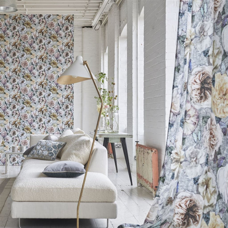 Regular price £105.00Intricately painted blooms and flower heads with an almost photographic quality are arranged on a distressed filigree pattern, highlighted with almost iridescent butterflies. Digitally printed onto pure linen with a soft tumbled finish suitable for curtains, blinds and cushions. The scale of this floral print creates a contemporary feel. Available in two stunning colourways. (Fabric - Width: 134cm, Horizontal Pattern Repeat: 134cm, Vertical Pattern Repeat: 101cm105.00 per metre)