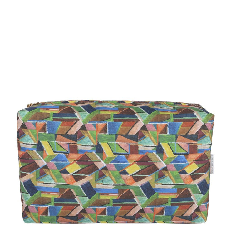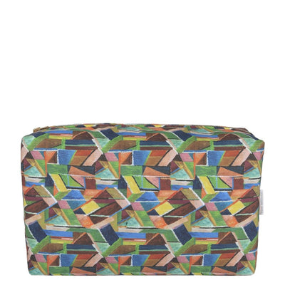 Regular price £25.00This stylish medium washbag features an abstract graphic geo pattern in multi colour tones. Digitally printed onto a water-resistant cotton with a waterproof lining. Zip opening with a contrast binding detail in bold green.